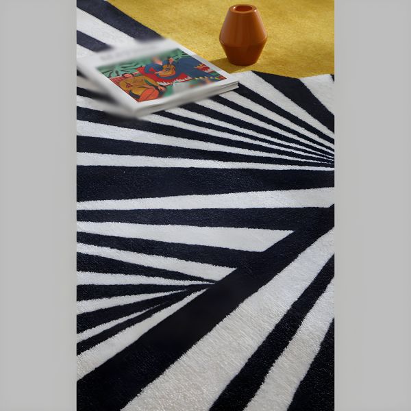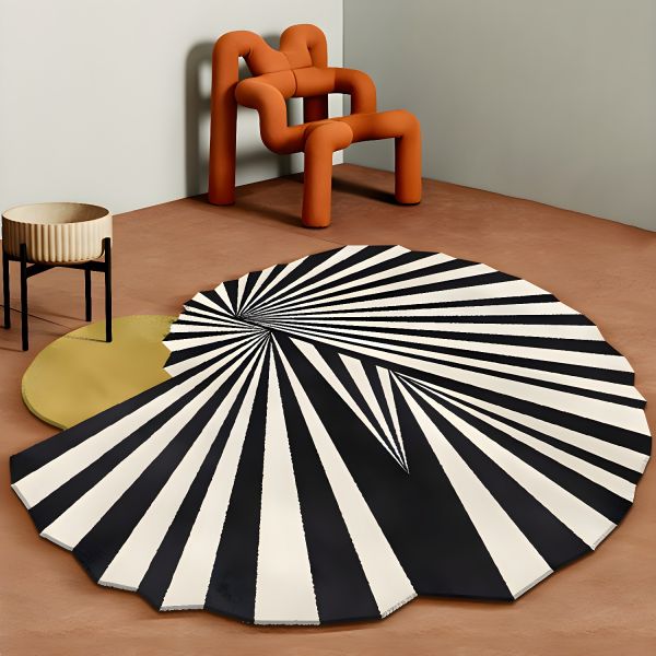 Thanks to its monochrome palette and irregular outline, this carpet fits effortlessly into a wide range of interior styles—be it modern minimalism, urban chic, or eclectic bohemian. The bold stripes can elongate your space, while the irregular edges add an organic, free-flowing feel. Pair it with sleek metal furniture for a high-contrast look or soften it with warm wood tones for a cozy yet sophisticated vibe.